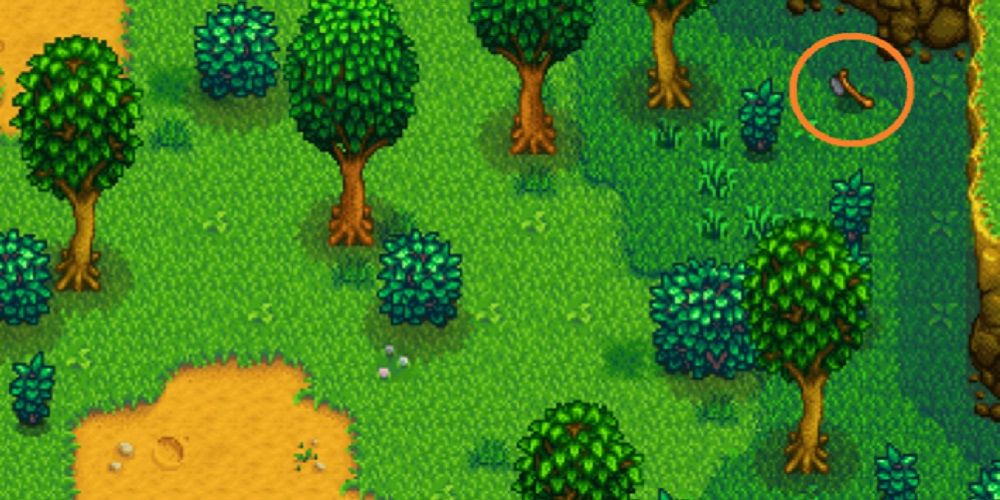 El hacha de Robin se puede encontrar al sur de la casa de Leah., escondido junto a un muro de tierra al otro lado del río. Cruza los puentes que conectan la pequeña isla con el resto del bosque y gira hacia el este cuando llegues a los cuatro parches de tierra. La ubicación específica se muestra en la foto de arriba. Una vez que lo hayas encontrado, puedes llevárselo a Robin y reclamar tu recompensa.