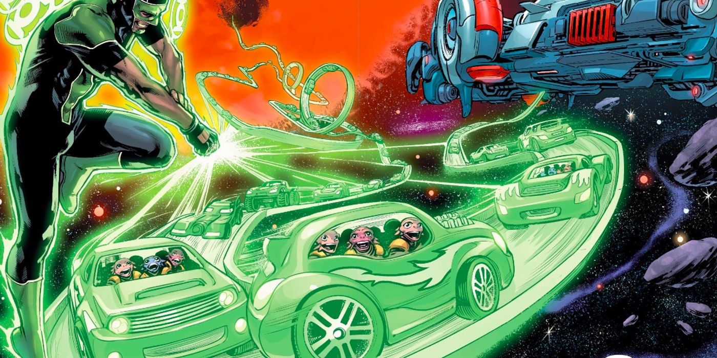Simon Baz podría no tener tanta experiencia como otros Lanterns en esta lista, pero rápidamente descubrió de lo que era capaz con un Power Ring en su dedo. Linternas Verdes #34 ve a Simon y su compañera Jessica teniendo que rescatar a una raza de extraterrestres de un planeta moribundo. Un recuerdo de la infancia inspira a Simon a llevar a los alienígenas lejos de forma segura en una pista de coches gigante. Cuando es necesario, el Power Ring es tan bueno para salvar vidas en masa como para combatir fuerzas hostiles.
