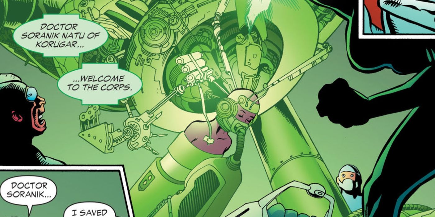 No todos los Green Lanterns usan sus Power Rings con fines ofensivos, pero pueden salvar tantas vidas con ellos. Cuerpo de Linternas Verdes: Recarga #1 ve al doctor Soranik Natu reclutado en el Cuerpo en medio de una cirugía. Sin otra opción y con la vida de su paciente en juego, Soranik acepta el anillo e inmediatamente crea un complejo sistema de equipo médico para realizar un procedimiento delicado. El Power Ring es un arma poderosa, seguro. Pero en manos del Green Lantern correcto, puede tener un propósito mucho más noble.