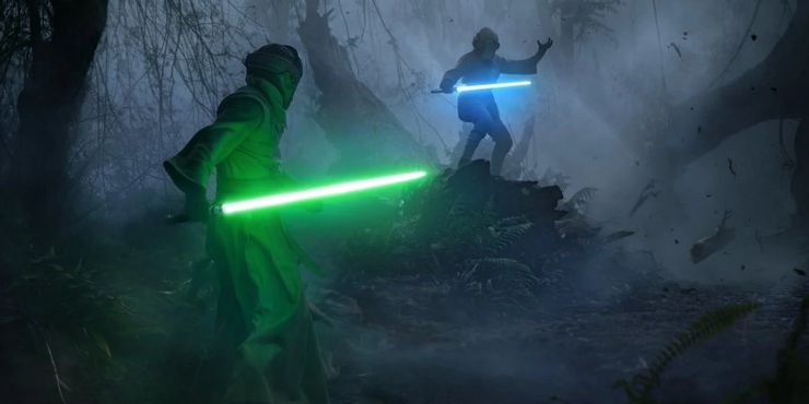 Toda la secuencia es sobresaliente. Está diseñado maravillosamente para hacer que el giro sea impactante pero que tenga sentido. Este giro, por supuesto, conduce a otra escena enormemente inesperada, que es la muerte de Luke Skywalker, la única muerte de los héroes de la trilogía original que la mayoría de los fanáticos no esperaban en ese momento en particular.