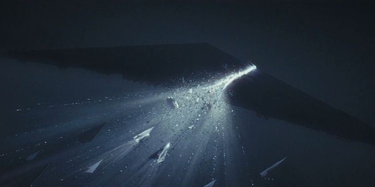 Con el uso del hiperespacio, la escena es impresionante. El silencio solo sirve para hacerlo más escalofriante. Nadie esperaba ver el hiperespacio utilizado de esa manera, pero los fanáticos de la película están felices de que Rian Johnson haya tomado esa decisión en particular.