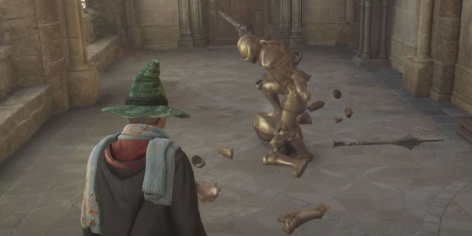 La mayoría de los jugadores estarán familiarizados con las dos armaduras que se encuentran afuera del Central Hall, una de las cuales se puede escuchar con frecuencia tarareando una melodía, lo que a su vez incita a su molesto compañero a darles un firme empujón. en una rara Legado de Hogwarts evento, sin embargo, Los estudiantes pueden presenciar cómo los empujones pasivo-agresivos se intensifican hasta convertirse en un asesinato en toda regla..