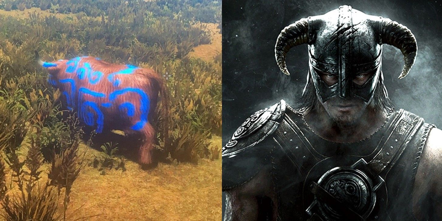 “/> En casos muy limitados, los jugadores pueden toparse con un granjero que acompaña a una vaca pintada mientras exploran los caminos de Skyrim. Cuando se interactúa con este NPC, le explican que la vaca es una oferta para la tribu de un Gigante cercana. Esto puede ignorarse fácilmente, pero si los jugadores continúan siguiendo al personaje y a su vaca, podrán ver el resultado del encuentro.