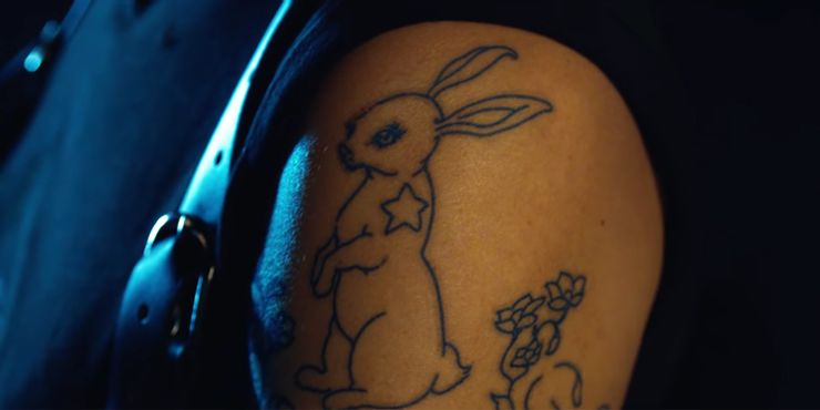 La primera pista de Neo de que el mundo no era lo que él pensaba apareció en el original. Matriz película. Esta señal visual está bastante cortada y seca. Neo ve al conejo blanco como un tatuaje en el brazo de alguien. Morpheus le dice a Neo que siga al conejo por la madriguera del conejo.