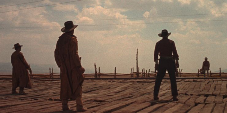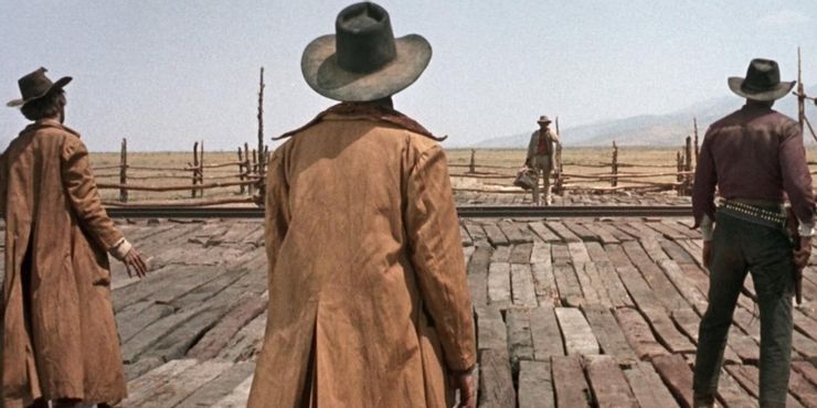 Por ejemplo, el funeral de McBain se toma directamente del clásico de 1953, Shane. El final y la masacre en la granja McBain, reflejan la de John Wayne. Los buscadores. La escena de la subasta y los plumeros de Cheyenne estaban destinados a hacer referencia El hombre que mató a Liberty Valance. Esas son solo algunas de las docenas de referencias.