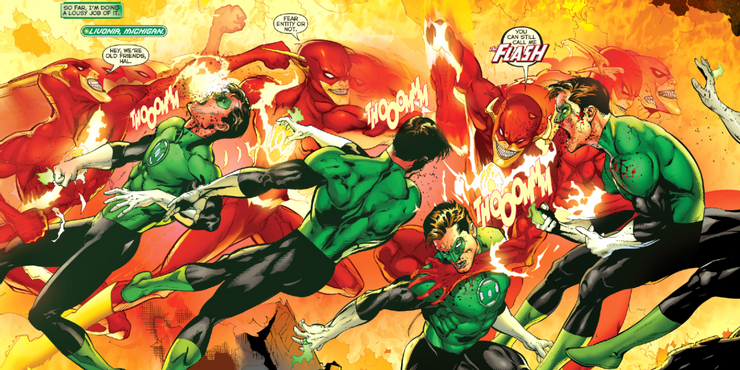 Green Lantern puede volar más rápido que la mayoría y utilizar sus construcciones para ganar gran velocidad; casi a los niveles de Speedster a veces. El personaje también copia algunos de los otros poderes principales de Barry, como el uso del viaje en el tiempo en algunas historias cómicas esenciales de Hal Jordan. Green Lantern usa este milagro en particular con mucha más moderación y responsabilidad de lo que Flash podría pensar y habría menospreciado los eventos de Punto de inflamabilidad.
