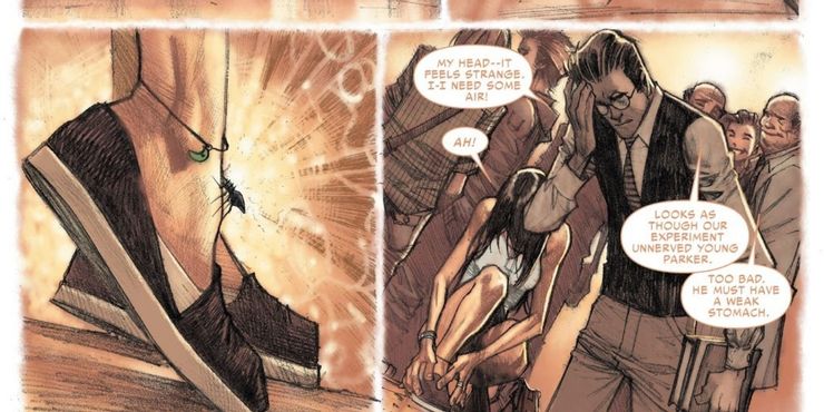 En la mayoría de las historias de origen de Spider-Man, la araña se expone accidentalmente a la radiación en una exhibición científica y muere instantáneamente después de morder a Peter. Sin embargo, este cómic altera la historia con la araña que sigue mordiendo a Cindy.