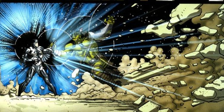 Uno de los enfrentamientos de cómics más frecuentes de Black Bolt es contra Hulk. Ser muy inferior a Hulk en términos de fuerza física hizo que esta no fuera una tarea fácil, pero Black Bolt pudo usar su grito sónico para derrotar a la bestia furiosa no solo una vez, sino en múltiples ocasiones.