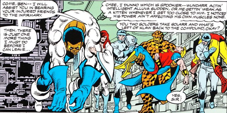 The Thing llegó al grupo a través de Quasar, un poderoso héroe cósmico que aún no ha aparecido en el MCU. Juntos lucharon contra muchas amenazas de supervillanos, incluido el Hombre Nth, que es uno de los magos más poderosos del Universo Marvel.