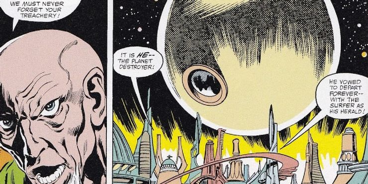 The Silver Surfer fue una adición no planificada a “The Galactus Trilogy”, el arco histórico histórico que atravesó Cuatro Fantásticos # 48-50. El artista Jack Kirby lo incluyó en sus páginas para el número 48 después de pensar que el Galactus devorador de mundos necesitaba algún tipo de heraldo.