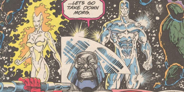 Silver Surfer no es el único heraldo de Galactus, y sus sucesores a veces fueron menos humanos que él. Uno de ellos, Morg, era tan malvado que incluso Galactus finalmente decidió prescindir de él. Silver Surfer reunió a muchos de los ex heraldos, incluidos Nova, Terrax y Air-Walker, para detenerlo.