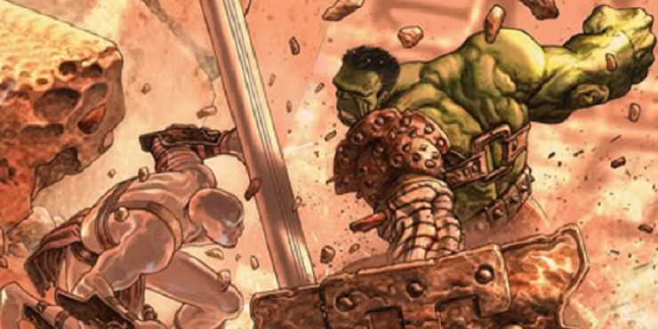 Los fanáticos de MCU están familiarizados con el Planeta Hulk historia gracias a su adaptación en Thor: Ragnarok, pero la película omitió una parte importante de la historia cómica. Thor y Hulk se unieron en la película para luchar en la arena de gladiadores en Sakaar, pero en el cómic, era Silver Surfer.