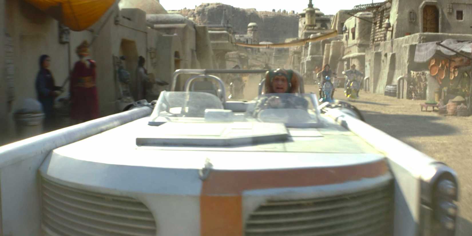 Apenas hay espacio para maniobrar en las calles de Mos Espa, No está filmado para verse muy rápido, y la edición no compensa con ningún corte rápido. Se siente tonto y artificial, como si solo estuviera allí para rellenar el tiempo de ejecución agregando algo parecido a la acción. Boba inmediatamente vuela sobre su jetpack en el momento en que termina la persecución, entonces, ¿por qué perdió el tiempo haciendo que su tripulación persiga a alguien?