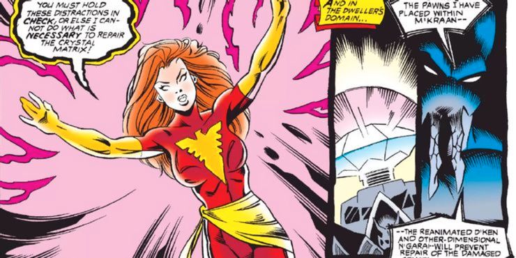 The Dweller-in-Darkness en realidad jugó un papel en la destrucción de su universo anterior. En Aventuras de los X-Men # 11-12 de 1997, se revela que luchó contra la Fuerza Fénix después de causar una grieta en el antiguo y poderoso Cristal M’Kraan. Dañó el cristal, que también se conoce como el Nexo de todas las realidades, y podría tener algo que ver con el multiverso en el MCU, para alimentarse del miedo que surgiría del fin del universo. La Fuerza Fénix frustró su plan al transmitir paz a todos los seres vivos, pero ese universo fue destruido al final.