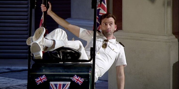 Cuando la ejecución original de Tennant Médico que envuelto, él y el resto del elenco y el equipo actuaron Los proclamadores‘ canción “500 Miles” para la fiesta de despedida de la era Russell T. Davies.