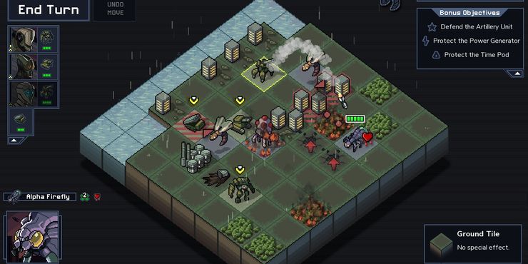 El juego sigue una guerra futurista entre humanos en mechs y monstruos gigantes que amenazan la existencia misma de la humanidad, y en cada nivel los jugadores toman el control de varios mechs que luchan contra las bestias amenazadoras. Los jugadores deben planificar cuidadosamente sus movimientos y una potencia de fuego limitada para proteger a los civiles de los monstruos, y la curva de dificultad es bastante empinada, lo que significa que los jugadores pueden tener que intentarlo una y otra vez para salvar el mundo.