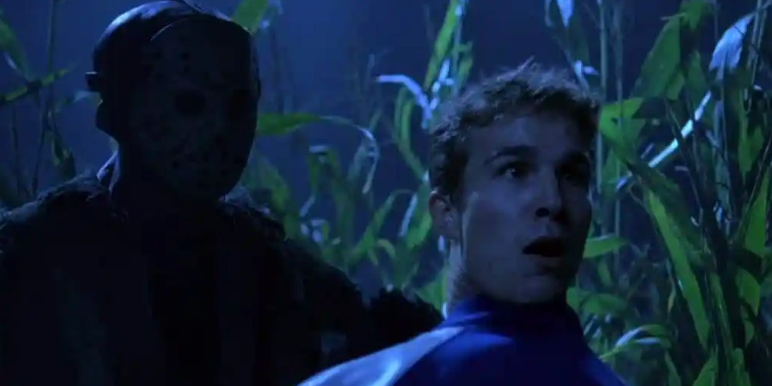 En Freddy contra Jason, Freddy Krueger desató a Jason Voorhees en Elm Street para que los habitantes lo recordaran y pudiera recuperar sus poderes. Sin embargo, la matanza de Jason puso celoso a Freddy, ya que Freddy creía que estaba robando a sus víctimas. Uno de los primeros lugares a los que Jason fue fue a una fiesta rave en un campo de maíz, donde se encontró con un personaje llamado Shack y su amigo anónimo. Cuando los dos fumetas vieron a Jason, se burlaron de él, creyendo que era un granjero local importante. Sin embargo, Cuando el personaje sin nombre pasó de burlarse de Jason a darle un golpe en el pecho, rápidamente se dio cuenta de que era un error. cuando Jason giró la cabeza 180 grados.