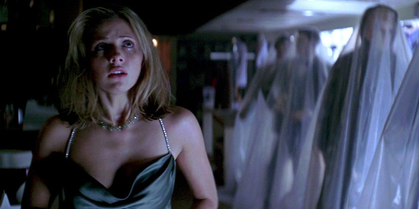 Sé lo que hiciste el verano pasado Siguió a cuatro estudiantes que, creyendo que habían matado a un hombre, arrojaron el cuerpo, sólo para descubrir que estaba vivo y los acechaba un año después. Una de esas estudiantes, Helen Shivers de Sarah Michelle Gellar, fue testigo de cómo su acosador mataba a un hombre durante las celebraciones del 4 de julio y corrió a la tienda de su familia, donde vio cómo mataban a su hermana. Ella escapó a la calle y, a pesar de ver el desfile a solo unos metros de distancia, inexplicablemente decidió mirar hacia atrás en lugar de correr hacia la seguridad del público.permitiendo que el asesino la matara con su gancho.