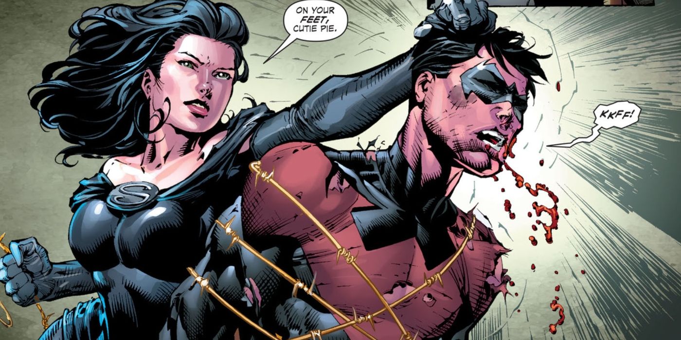 - Nightwing se convirtió en vampiro y se volvió contra sus amigos, incluso golpeando a Batman en el pecho.