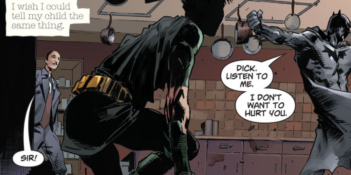 “/> En DCejado, la Ecuación Anti-Vida puso al mundo patas arriba al convertir a héroes y enemigos en zombis. Uno de los primeros en girar fue varios miembros de la Bat-Familia, a saber, Dick y Tim. Los dos héroes atacaron a Batman y lograron infectarlo. Aunque no se muestra, Nightwing y Robin fueron derrotados por Batman para proteger al Alfred no infectado. Desafortunadamente, a Alfred se le encomendó la tarea de matar a Batman cuando el virus Anti-Life se lo llevó. De un solo golpe, varios miembros de la Bat-Family encontraron sus finales grises.