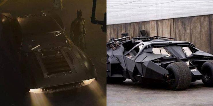El Batman de Bale tenía un Batimóvil que se basaba en el diseño de un tanque y no se parecía en nada a un automóvil promedio. Por otro lado, el Batimóvil de Pattinson era un Dodge Charger remodelado. Según Matt Reeves, eligió este Batimóvil porque quería que se viera intimidante (a través de GQ).