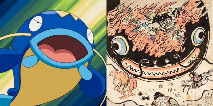 A primera vista, Whiscash, introducido en Pokémon Rubí y Zafiro, es un pez azul grande que se parece mucho a un bagre, y su tipificación dual agua / suelo parece inspirada en el bagre que pasa la mayor parte del tiempo en el fondo de los lagos y ríos. Sin embargo, el conjunto de movimientos de Whiscash, incluido el poderoso ataque físico Terremoto, lo conecta con Nemazu de la mitología japonesa. Nemazu, un pez gato gigante que vive debajo de las islas de Japón, está eternamente retenido por los dioses. Cuando puede moverse libremente, se dice que sus movimientos causan peligrosos terremotos en todo el país.