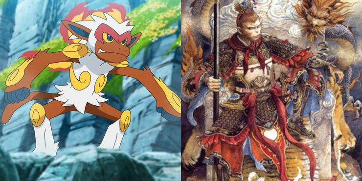 Sun Wukong, también conocido como el Rey Mono, es el personaje principal de la épica historia china. Viaje al Oeste. Este ser mitológico aparece como un mono humanoide con una postura, pelaje y cola de mono humanoides, y es un luchador extremadamente competente. Infernape, un Pokémon icónico que es uno de los compañeros más fuertes de Ash en el anime, tiene un diseño visual que imita a Sun Wukong. Parece un mono humanoide alto con acentos dorados reales que adornan su cuerpo. Si bien la inspiración para la mitad del fuego de su escritura no está clara, la otra mitad, la lucha, puede ser una referencia a la destreza marcial de Sun Wukong o al estilo de mono del kung-fu clásico.