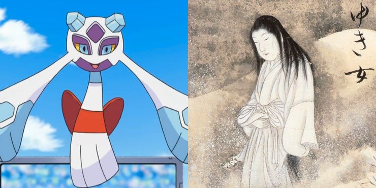 El nombre de Froslass no solo significa “mujer de nieve” tanto en inglés como en japonés, sino que su escritura dual de hielo / fantasma, el género solo femenino y la silueta en forma de kimono hacen que su conexión con Yuki Onna sea clara.