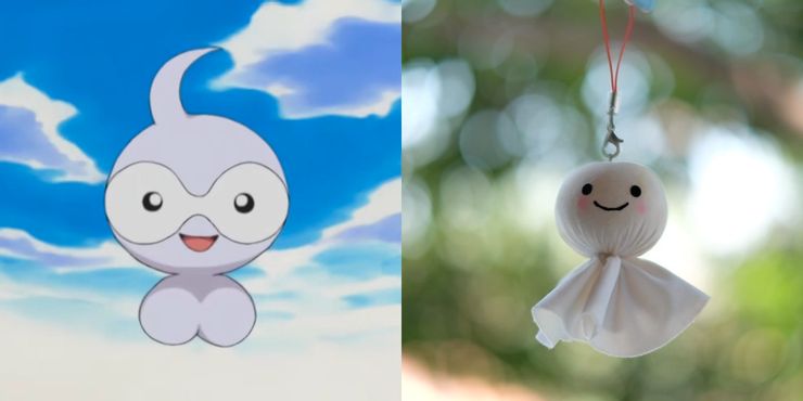 Castform es un Pokémon único con la rara habilidad de hacer la transición entre múltiples formas diferentes según el clima, incluidas las formas de sol, lluvia y nieve. Si bien cada una de estas formas tiene una clara conexión de diseño con el clima relevante, Castform es extrañamente simplista. Si bien se parecen parcialmente a las nubes planas, sus grandes cabezas redondas y fondos ondulados se parecen más a los encantos japoneses de teru teru bozu. Estos amuletos, hechos de tela o papel enrollado, se cuelgan de árboles o ventanas y se dice que tienen poderes mágicos para traer buen tiempo.