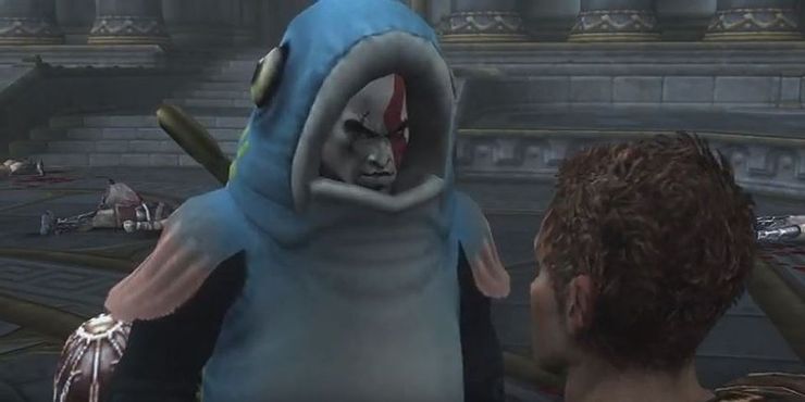 Fácilmente uno de los disfraces más ridículos de la lista, lo único que hace que el disfraz de pez gigante sea más divertido es el personaje que lo lleva. Kratos es uno de los personajes más intimidantes de los juegos, habiendo pirateado y cortado su camino a través de docenas de deidades y semidioses, pero verlo hacerlo todo de nuevo mientras usa la máscara Cod of War es absolutamente ridículo.