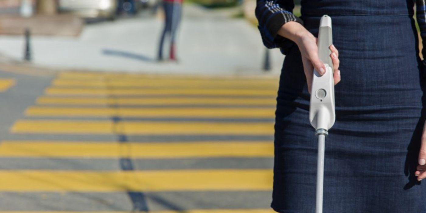 WeWalk es uno de los dispositivos más innovadores jamás creados para personas con discapacidad visual. El dispositivo tiene la forma y el tamaño de un bastón estándar, pero se puede conectar a través del teléfono inteligente del usuario para una mayor protección y orientación. Esto se puede controlar con una aplicación de teléfono inteligente accesible.