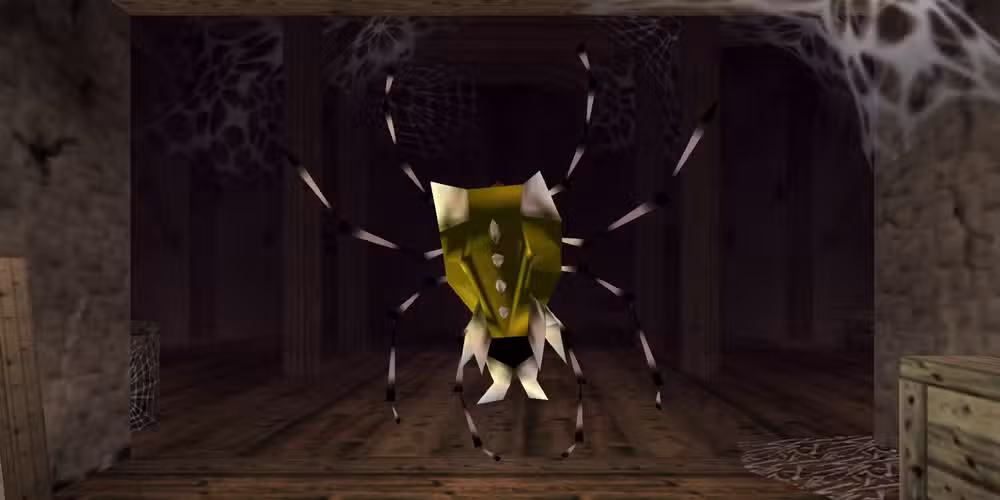 Ocarina del tiempo tiene muchas misiones secundarias, y hablaremos más sobre ellas más adelante, pero quizás la más molesta, si quieres jugar al 100%, es la búsqueda de Gold Skulltula. Además de piezas de corazón, Las Skulltulas de oro son el principal objeto de colección en Ocarina del tiempo.