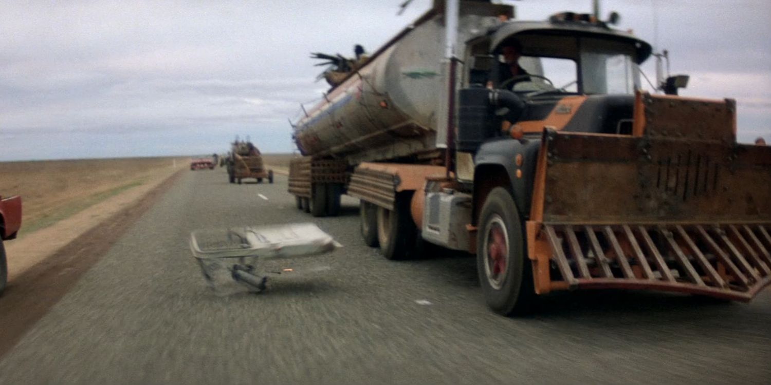 La trilogía de Mad Max realmente no comienza hasta la segunda película, The Road Warrior, que presenta la matanza vehicular característica de la franquicia y el páramo post-apocalíptico.