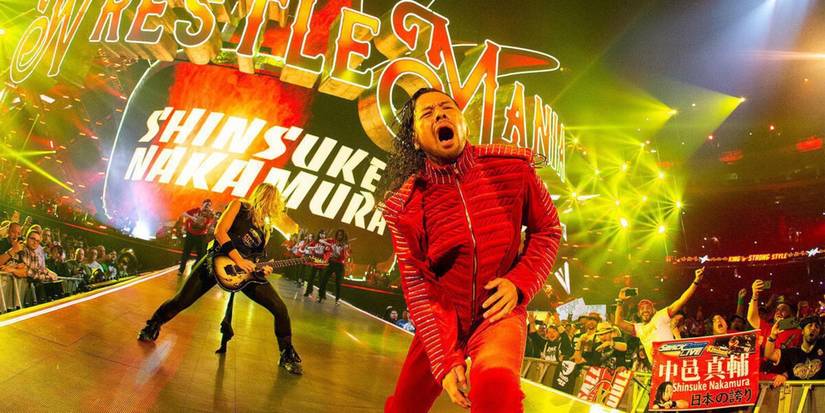 Afortunadamente, lo que no decepcionó fue la entrada rockera de Shinsuke Nakamura. Nakamura ya tiene una de las mejores canciones temáticas de entrada en la WWE, pero para la etapa más grandiosa de todas, sus violines fueron reemplazados por cuerdas de guitarra interpretadas en vivo por Nita Strauss de Alice Cooper.