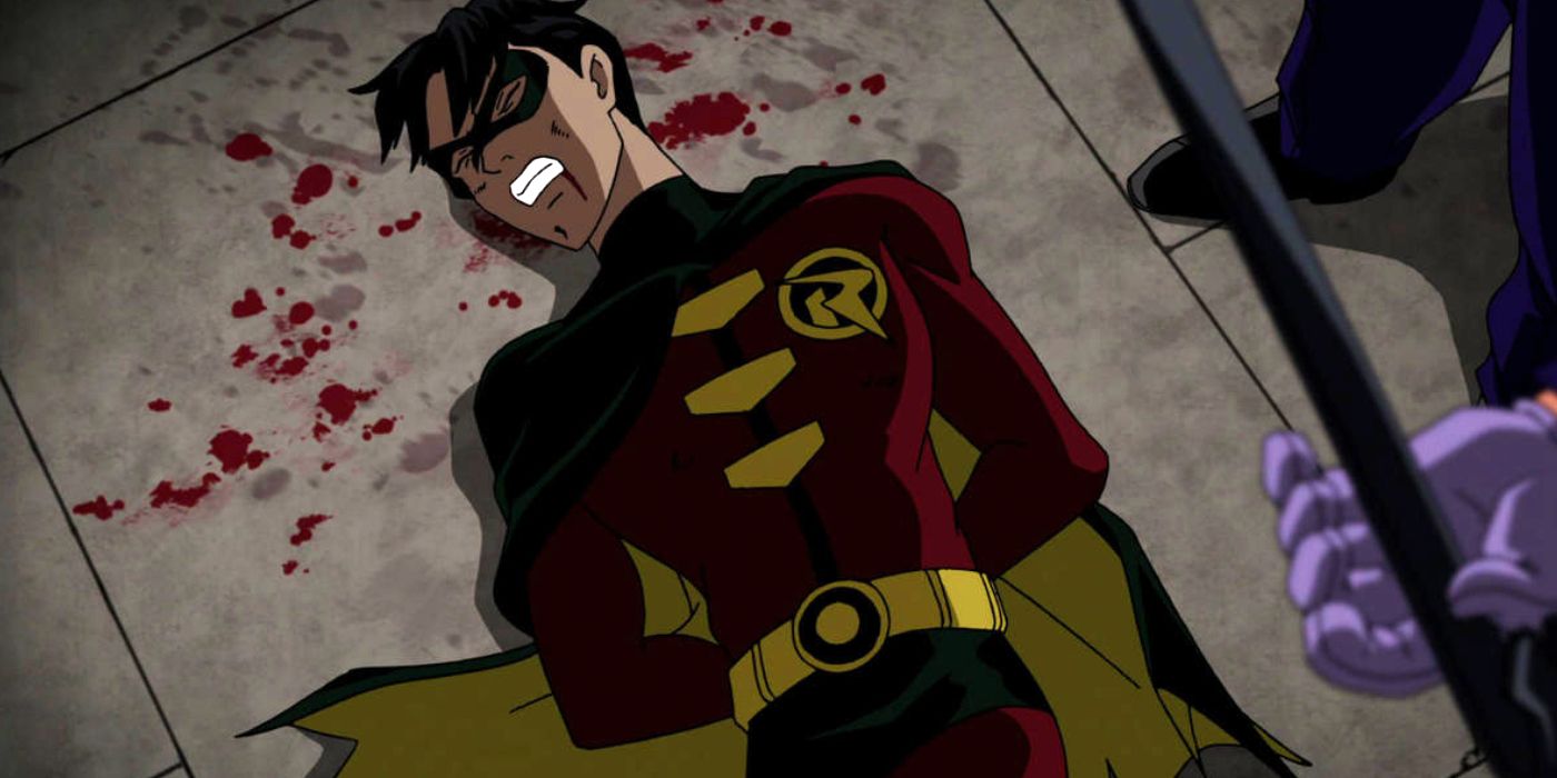 Batman: bajo la capucha roja abrió con la muerte de Jason Todd, el segundo Robin. La muerte de Jason Todd fue un momento clave en la historia de DC Comics, cambiando el curso del viaje de Batman para siempre. bajo la capucha roja trajo Una muerte en la familia a la pantalla, aunque saltó la mayor parte de la historia y saltó directamente a la muerte de Robin a manos del Joker. A pesar de no ser una escena muy gráfica, ver al Joker golpear a un indefenso Jason Todd con una palanca fue bastante espantoso. Curiosamente, el Joker mató a Robin en el DCEU, pero ninguna de las películas lo mostró.