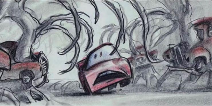 De Pixar Carros realmente no es una película que merezca demasiada discusión creativa, pero el hecho de que una escena tan espeluznante apareciera en una película de Disney sobre autos que hablan es un poco sorprendente. En una escena llamada “Perdido”, Lightning McQueen se encuentra en un bosque encantado lleno de cuerpos oxidados y cascos de autos viejos mientras intenta encontrar el camino de regreso a la interestatal.