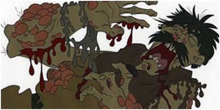 Por más impactante que parezca, el borrador original de Disney casi fue marcado con una calificación R debido a una escena abiertamente gráfica y sangrienta en la que uno de los guardias de Horned Kings se convierte en un miembro zombificado de Cauldron Born, su piel se derrite después de una mordida sangrienta. No hace falta decir que es obvio por qué este solo existe en las celdas de película hoy en día.