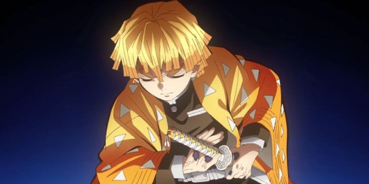 Zenitsu, habiendo dominado solo la primera forma en la técnica Thunder Breathing, crea variaciones y modificaciones para mejorar su habilidad y manejo de la espada. Su hoja está adornada con rayas de rayos a lo largo de la totalidad de la hoja y está envainada en una funda negra simple. La espada amarilla mejora las habilidades de velocidad de Zenitsu cuando se combina con su técnica de respiración.