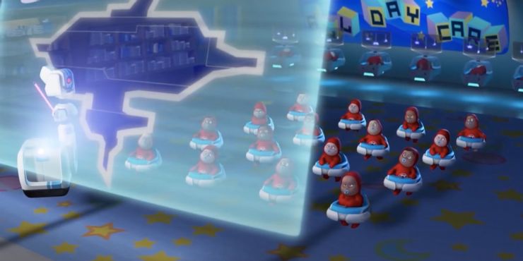 Es una idea espeluznante, especialmente considerando lo extrañamente sin vida que son los Nannybots y cómo podrían potencialmente convertir a los niños en consumidores inútiles y formar parte del sistema Axiom y Buy-n-Large.