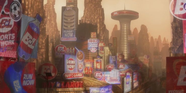 En lugar de ofrecer una solución saludable para revertir y prevenir el daño, Buy-n-Large persiste en continuar beneficiándose del mercado al hacer que la Tierra sea habitable para los humanos y lanzarlos al espacio, donde pueden continuar beneficiándose en un futuro. ambiente controlado.