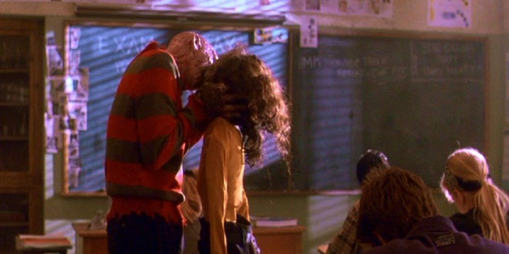 Justo antes de agarrar a una estudiante con asma y comenzar a besarse con ella en El maestro de los sueños, Freddy pregunta retóricamente “Quiero chupar la cara” antes de inhalar todo su cuerpo hasta que se infla como una muñeca inflable. El polvoriento juego de palabras probablemente pasaría por alto al público en estos días.