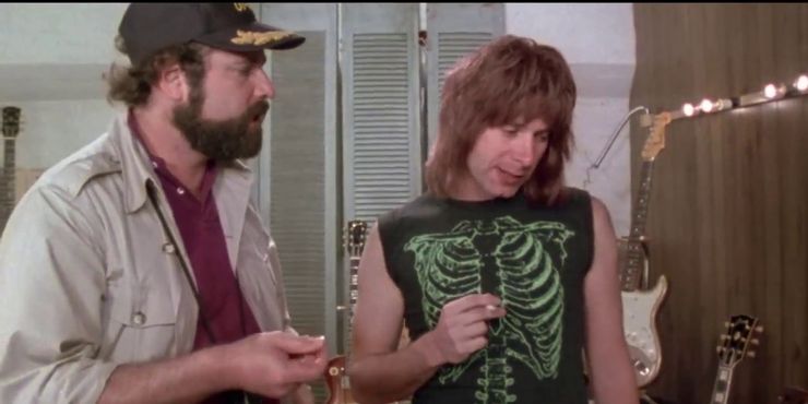 Esto es punción lumbar es una sátira tan pasada por alto, ya que es un falso documental que sigue a la banda titular, y la mayor parte del humor está en lo tontas que son estas estrellas de rock. En una escena, cuando se habla de un amplificador, uno de los miembros de la banda dice que es tan fuerte que “sube a 11.”