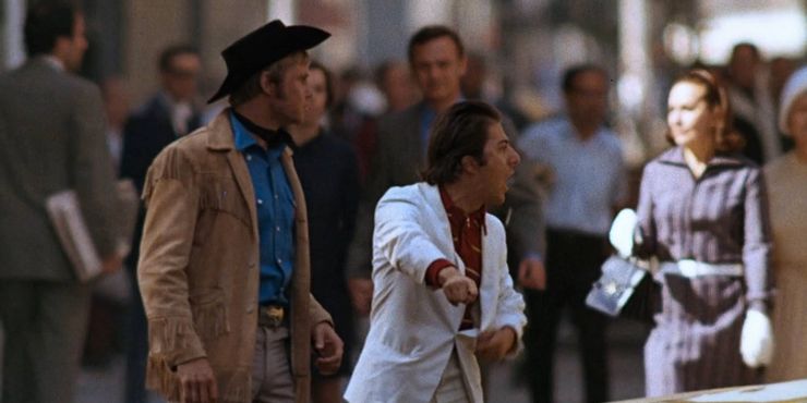 La frase popular se utilizó por primera vez en Vaquero de medianoche, cuando Joe y Ratso (Dustin Hoffman) están cruzando la calle y un taxi les bloquea el camino. Lo sorprendente es que la cita fue completamente improvisada. La escena se filmó en una concurrida calle de Nueva York que no se cerró durante el rodaje, por lo que la gente se cepillaba los hombros y los automóviles estaban atrapados en el tráfico.