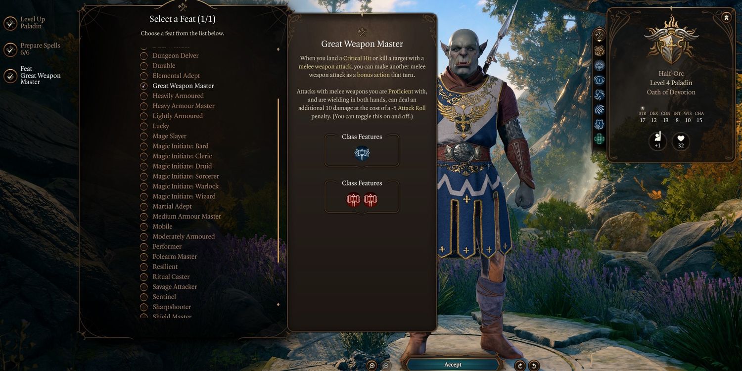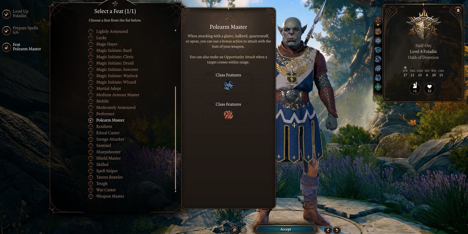 La imagen clásica de un paladín es uno vestido con una armadura pesada y brillante y como una de las clases en BG3 que tienen competencia en armaduras pesadas, Heavy Armor Master les ayudará a aprovecharla al máximo. Esta hazaña aumenta la puntuación de Fuerza del paladín en uno, lo que funciona muy bien con otras hazañas centradas en armas basadas en la fuerza, como Gran maestro de armas.
