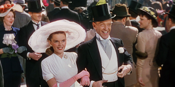 Protagonizada por la increíble Judy Garland y Fred Astaire, el musical destaca a un esperado dúo de baile de un club nocturno y su incipiente amistad a pesar de las dificultades. Los fanáticos de la querida película romántica admiran más notablemente el impresionante conjunto de sombrero y vestido de verano blanco del personaje de Judy, mientras que el personaje de Fred lucía un sombrero de copa característico decorado con cintas rosas y lavanda, que recuerdan la elegante moda de primavera.