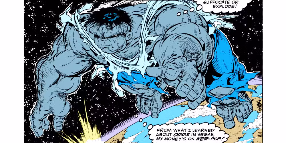 El poder de Hulk trasciende la fuerza bruta, ya que esta hazaña técnicamente requiere una cantidad infinita de fuerza para ser expulsada, lo cual es científicamente imposible. La gravedad infinita debería ser una paradoja que nadie podría liberarse nunca, independientemente de la fuerza. Además, este es Gray Hulk, que tiene menos fuerza que el alter ego tradicional de Bruce Banner.