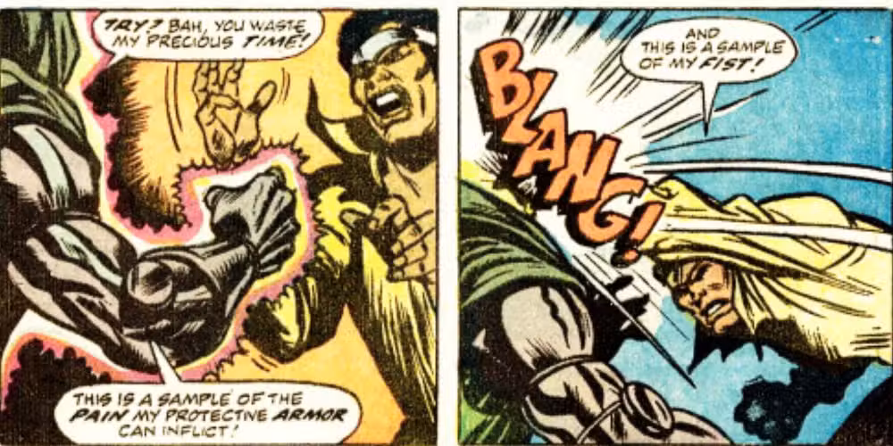 Doctor Doom es uno de los villanos más brillantes y duraderos de Marvel, sin mencionar a los más orgullosos. Luke Cage, en ese momento todavía es un héroe a nivel de la calle, lo golpea sin más motivación que reclamar lo que le debe. Esta historia no ha envejecido bien debido a los orígenes insensibles de Blaxploitation de Luke Cage, pero vale la pena mencionarlo como una hazaña subestimada de “Héroe callejero contra un nivel A de nivel A”.