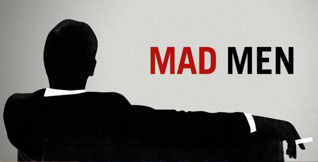 La secuencia del título de apertura de Hombres Locos es uno de los mejores y más interesantes en la memoria reciente, ya que una silueta de Don Draper cae a través de un horizonte lleno de anuncios antes de aterrizar en una silla con un vaso de whisky. La secuencia del título se realizó como un homenaje al trabajo icónico del diseñador gráfico Saul Bass, quien diseñó carteles y títulos para películas a lo largo de los años 50 y 60.