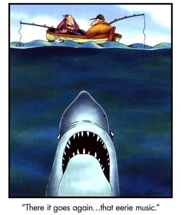 Pocas películas apoderadas de la playa y audiencias de cine tanto como Fauces hizo. Como todos saben, la bestia titular fue acompañada en sus escenas por un puntaje icónico que solo aumentó la ansiedad del espectador. Sin embargo, Larson voltea perfectamente las cosas con una idea simple. Aquí, El lado lejano ¿La partitura no diégica se ha vuelto diegética y un par de pescadores revelan que en realidad pueden escuchar la música “Dun Dun”. Solo siguen siendo ignorantes mientras el tiburón se prepara para morder. Es una idea simple pero Uno que muestra brillantemente el espíritu inteligente e innovador del lado lejano.