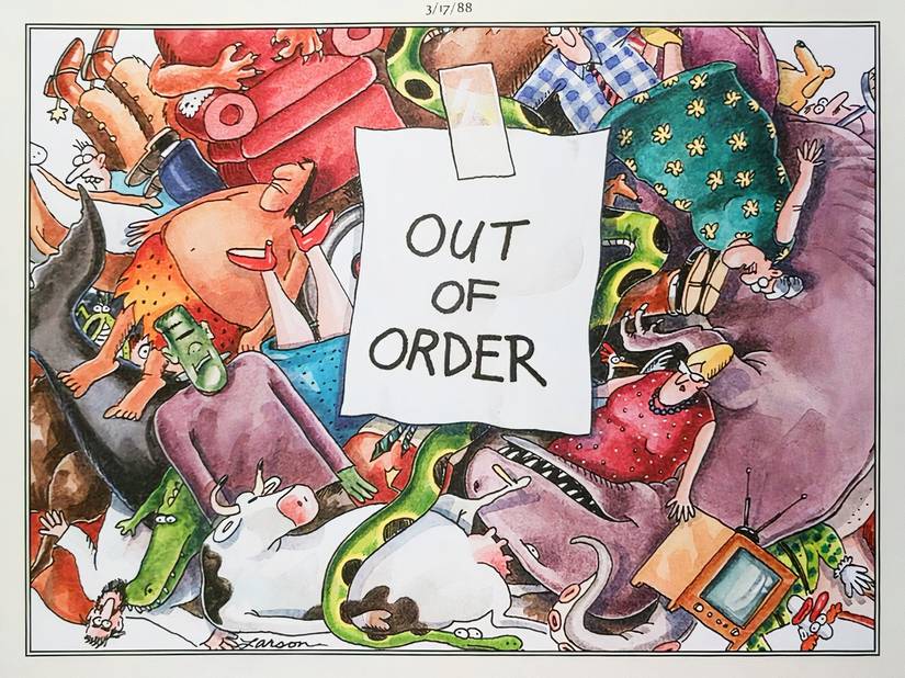 Tira cómica de hoja perenne El lado lejano ¡No tenía miedo de burlarse de nada, incluidos sus propios lectores! La querida franja de Gary Larson era conocida por burlarse de muchos sujetos, desde problemas amplios y complejos como la moralidad o la idea de una vida futura hasta las molestias de comportamientos extremadamente específicos de las personas.